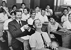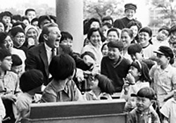 | 1961年、日本・東京の子どもたちと交流するダニー・ケイさん。彼はかつて、「子どもは、世界中同じです」「違う文化を持っているかもしれませんが、痛みや笑いは共通のものです」と語りました。 |