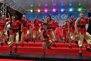 グランドフィナーレ第一部は、リトルキャロルのクリスマスソング美しい歌声で幕を開け、トリフォニー・ジュニア・オーケストラの軽快なトランペット・アンサンブル。ゆっくりと流れる時間のなか、Studio Bounceのキッズダンサーズのダンスが始まると空気は一変。小さい身体から繰り出されるエネルギッシュなパフォーマンスで、会場が沸きました。 第二部プレイベントのオープニングを飾ってくれたのは、2012年度世界ボディビル選手権大会第4位の鈴木雅さん。音楽にのせてポーズを決めるたび「おお〜!」とどよめきが起きていました。 続いて登場したのは、初出演の中高生を中心のチアダンスチームBrilliant Mermaid。「世界中の子どもたちにたくさんの笑顔と元気を届けたい」との思いで元気にパフォーマンスをしてくれました。続いて、最年少は5歳、最年長は68歳のタップダンスチーム「座頭市会」。タップの創り出すリズムと躍動感あふれるダンスが圧巻でした。