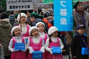 ガールスカウト、ボーイスカウト、そしてボランティアの方々の「世界の子どもたちのために!」「栄養不良に苦しむ子どものためにご協力ください!」「ユニセフ募金にご協力ください!」という、寒さに負けない元気な声が有楽町駅前広場に響き渡りました。皆様からいただいた募金は、ハンド・イン・ハンド募金キャンペーンを通じて、世界の子どもたちの命を守るユニセフ募金として用いられます。