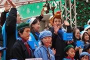 | かわいい衣装と元気な掛け声で募金を呼びかける、音羽ゆりかご会の子どもたち |