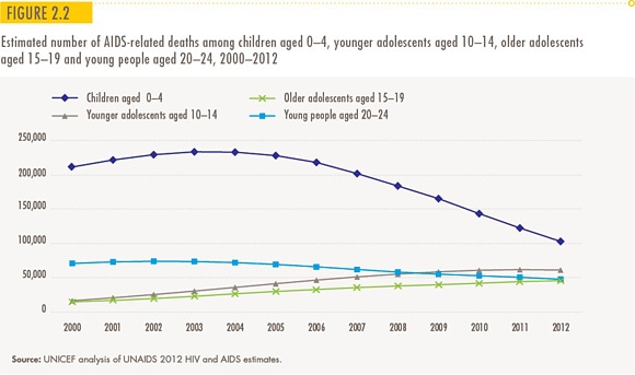 2005年時点で、エイズで死亡する10〜19歳は約7万1,000人だったが、2012年時点では11万人以上