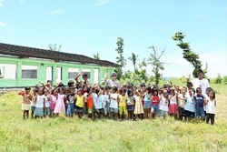 | タクロバン市内の小学校では子どもたちがとびきりの笑顔で出迎えてくれた |
