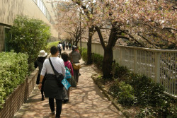 目黒川周辺と大使館をめぐる6kmまたは12kmのコースを歩いた参加者のみなさんは、桜の花びらが舞う中で思い思いに写真を撮ったりしながら、春の日のウォーキングを楽しまれていました。