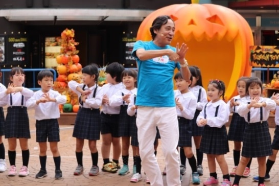 10月15日(月)、千葉県浦安市の商業施設イクスピアリでは、この日手洗いを学ぶイベントがいくつも行われました。ハロウィンの飾りつけで彩られた2Fのセレブレーションプラザでは、タレントのルー大柴さんが先生となって、「ユニセフ手洗い教室」を開催。招待された近隣のしおかぜ保育園の子どもたちと来場していた親子が参加しました。手のひらや指の間など6カ所の洗い方を丁寧に練習して、最後はみんなで楽しくダンスをしました。