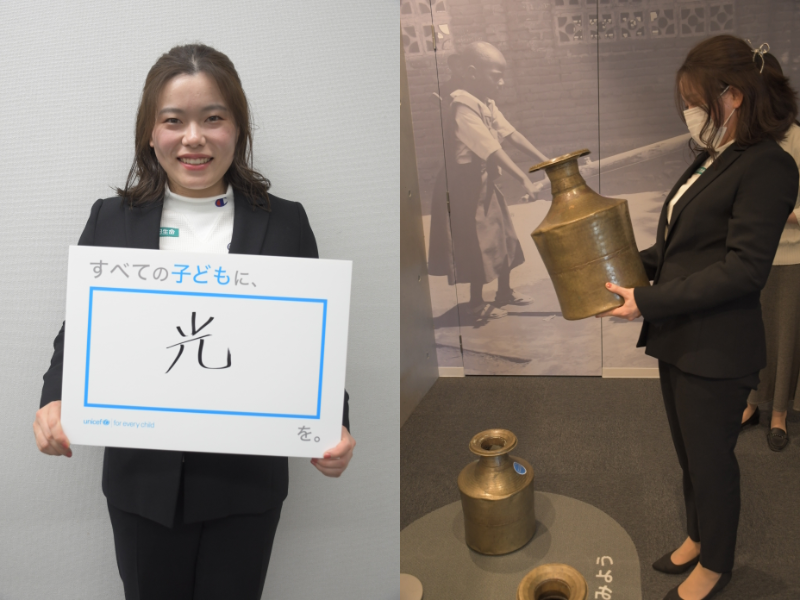 ユニセフハウス展示スペースを見学される勝みなみ選手