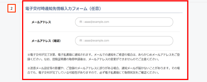 8)メールアドレスをご登録いただくと(ご任意)、領収書の電子交付が完了したタイミングで通知が届きます。