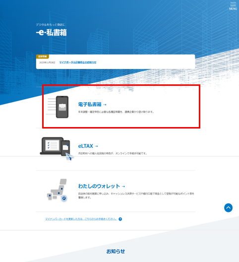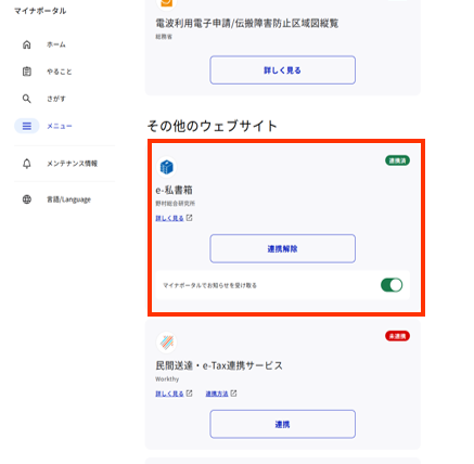 STEP1 マイナポータル利用登録後、「e-私書箱」と連携する