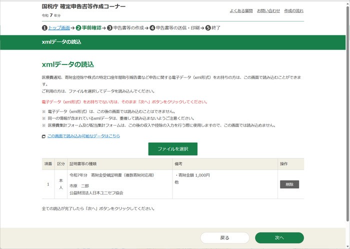 2)電子交付された控除証明書は、確定申告書作成コーナーに自動反映されます。