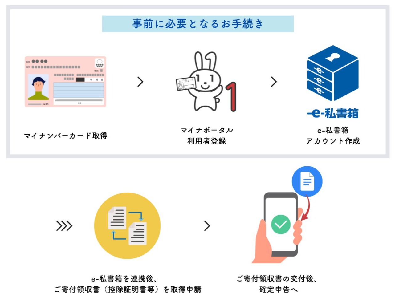 また、引き続き、ご寄付領収書は郵送でお届けいたしますので、マイナポータル連携をご利用予定のない方は、従来の方法で確定申告のお手続きを行っていただけます。