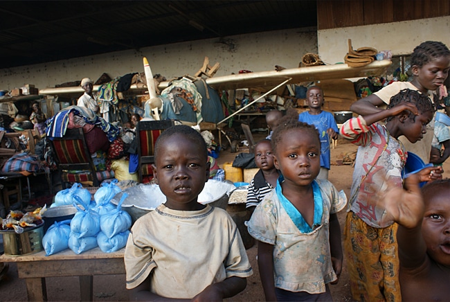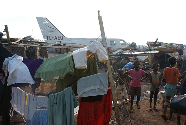 バンギ国際空港に隣接する国内避難民キャンプ。