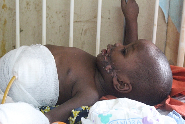 お父さんの命を奪った銃弾で、頬を打ち抜かれた2才の男の子。