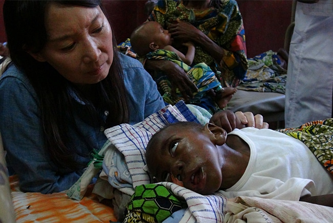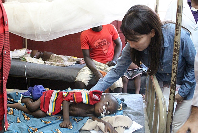 この国唯一の小児病院の栄養不良児治療棟は、重度の急性栄養不良の子どもで一杯。100床以上のベッドひとつひとつに、2-3人の子どもが横たわっても足りない状態です。