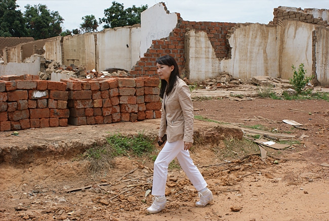 中部の街、ボサンゴアに国連機で向かいました。イスラム教系の人々が住んでいた地域は、見るも無残な姿です。