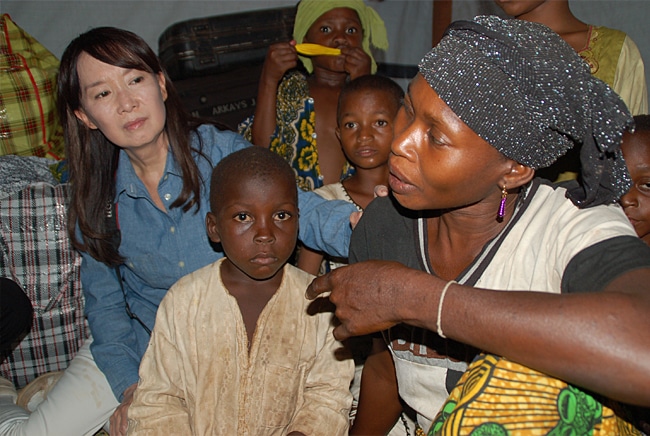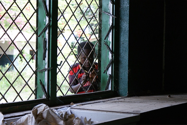 武装勢力「セレカ」に家族を殺され、北部の街ベンザンベからひとりでボサンゴアに逃れてきたグラサデュくん(10才)。やはりベンザンベを逃れてきた女性の元に身を寄せている。
