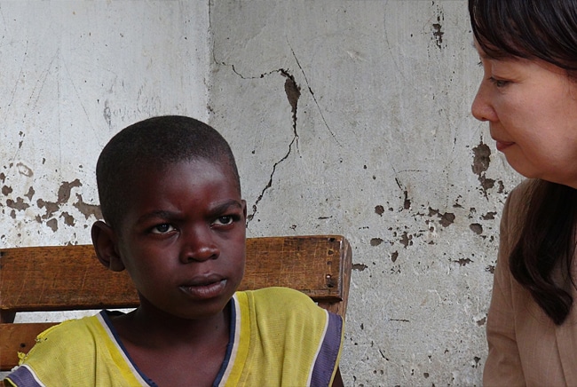 農作業に向かう途中、銃で撃たれて指を失った男の子。