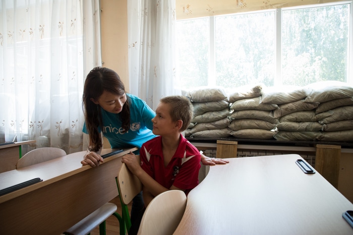 アグネス・チャン ユニセフ・アジア親善大使は、2018年6月16日から23日まで、ウクライナを訪問。命の危険と隣り合わせの生活について語る、子どもや家族の話に耳を傾けました。
