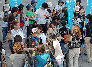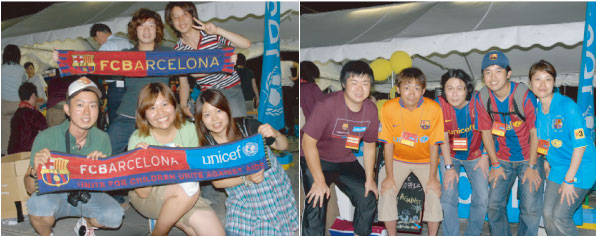熱いゲームが展開されたピッチの外では、”もうひとつのバルサ” ソシオ*の皆さんをはじめ、70名を超えるボランティアの方々が、猛暑の中、ユニセフ「子どもとエイズ」世界キャンペーンのために、バルサイレブンに負けない熱い心で募金活動に参加してくださいました。