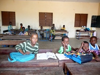 2008年に同プログラムの支援によって井戸が新設されたベセナ小学校では子どもたちが一生懸命勉強したり元気いっぱいに遊んだりしています。教室の片隅には、井戸から汲んできた水がたっぷり入った甕が置いてあり、のどが乾いた子どもたちは、コップでその水をおいしそうに飲んでいました。