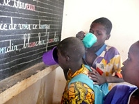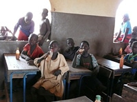 | ベセナ小学校の子どもたち | 教室に置かれた甕の水を飲む子どもたち |