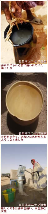 ユニセフが、マリでの「水と衛生事業」において大切にしている3つの柱は、「コミュニティー」・「学校」・「環境づくり」です。井戸を作る上で最も重要なことは、持続性を保つことであり、地域の人々が積極的に水の活動に参加・関与し、運営していくことが必要不可欠です。1L for 10 Lプログラムを通じ昨年いただいたご支援を用い、より多くの井戸を作ると共に、地域の人々の能力向上支援に力を入れて活動をしました。