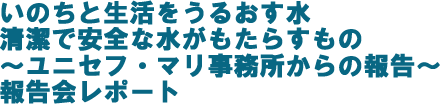 ■場所: 東京・港区 高輪ユニセフハウス ■主催: (財)日本ユニセフ協会 ■報告: ユニセフ・マリ事務所 水と衛生担当官 トゴタ・ソゴバ氏 |
