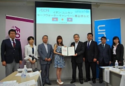 2013年6月24日 、今年で4回目を迎えたこのキャンペーンを通して、お客様から寄せられた募金とイオン1%クラブからその同額の募金、さらにイオンのプライベートブランド「トップバリュ」のミネラルウォーター(500ml)売上からの募金(1本につき5円の寄付)として、合計5,574万4,582円が贈呈されました。