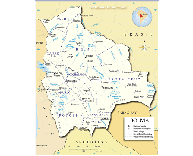 ボリビアは、南米中西部に位置する内陸国で、面積は日本の3倍の約110万平方キロ、人口は約1080万人です。経済は、農業、鉱業産品、天然ガス等の一次産品が総輸出の約80%を占め、国際価格の影響を受けやすい構造ですが、近年は、年間4〜5%の経済成長をとげています。亜鉛、鉛、リチウムなどの天然資源が豊富で、日本との関係では、亜鉛および鉛の主要な輸入先国の一つとなるなど、貿易経済関係も深まっています。経済成長が軌道に乗りつつある一方で、富の不平等な分配が長く続き、今日でも南米で最も所得格差が大きい国です。国民の60%以上が貧困層に属し、南米で最も所得水準の低い国の一つです。