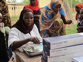 CNAでは、ちょうど、髄膜炎の予防接種も行われていました。チャドは、サハラ以南のアフリカの髄膜炎が流行する地域「髄膜炎ベルト」にある国のひとつで、なかでも非常に流行度の高い国です。ユニセフは、他の支援団体と共にチャド政府を支援し、全国的な髄膜炎予防接種キャンペーンを行っています。