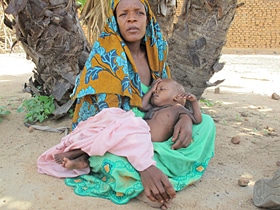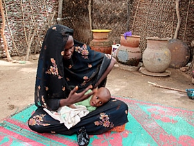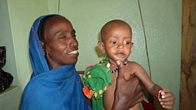 | 栄養治療センターの病室にて。 カディージャさんとハバーバちゃん。 |