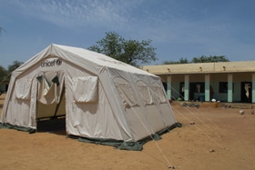 | 栄養治療センターに設置されたテントの仮設病室 |