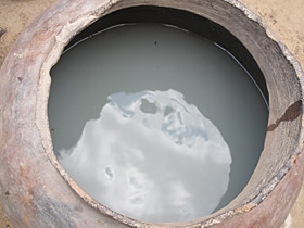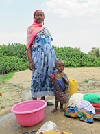 | 村の人たちが使う井戸。村から歩いて10分ほどのところにある。 | 洗濯や子どもの体を洗う水にも汚れた水を使わざるを得ない。 | |||