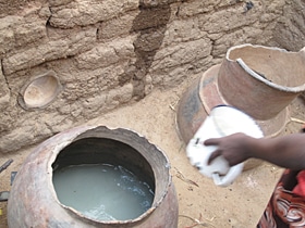 また、「清潔で安全な水へのアクセス」も多くの家庭にとって難しいことです。家庭にある水がめには汚れた水が入っています。そして、その水を飲む子どもたち。焼け付くような日差しの酷暑のチャドで、のどを潤す水は汚れた水しかありません。