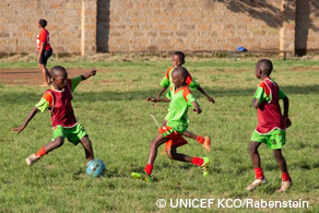 子どもたちのなかでも特に差別や偏見に晒されやすく、就学率や学習状況に課題のある女の子や障がいのある子どもたち。性別や障がいの有無にかかわらず全ての子どもたちが共に教育やスポーツ活動に参加できるように、スポーツを取り入れた教育プログラムへの参加と継続をサポートします。実施パートナー職員やスポーツ指導員、学校の教職員の受容能力を強化するワークショップやトレーニング等を通じ、3年間の活動で首都ナイロビ都市部のスラムで暮らす子ども約2,500人、実施パートナーのスタッフ・コーチや教員約230人が受益者となりました。