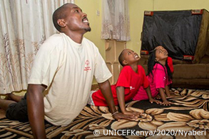 2020年3月中旬以降、新型コロナウイルス感染症の感染予防措置によりケニアでは全教育機関が閉鎖され集団での活動が禁止になりました。これまでとは異なり家庭でも子どもたちが学習やスポーツを継続できるように、あらたなかたちでの補習活動やスポーツ活動がスタート。テレビ、ラジオやオンラインによる遠隔学習を受けられない多くの子どもたちに向けて実施パートナーの個別指導担当が各家庭を訪問し、課題を配布、電話で質問に答えるなど個別支援プログラムを行いました。