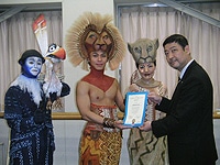 2006年5月19日には、本協力への感謝状贈呈式が、四季劇場[春]で行われ、劇団を代表してシンバ役:田中彰孝さん、ナラ役:黒木ますみさん、ザズ役:岡崎克哉さんが出席されました。