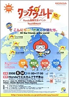 2008年6月14日(土)には、Honda青山本社ショールームウエルカムプラザ青山にて、Honda国際交流イベント「タッチ・ザ・ワールド10」が開催されます。