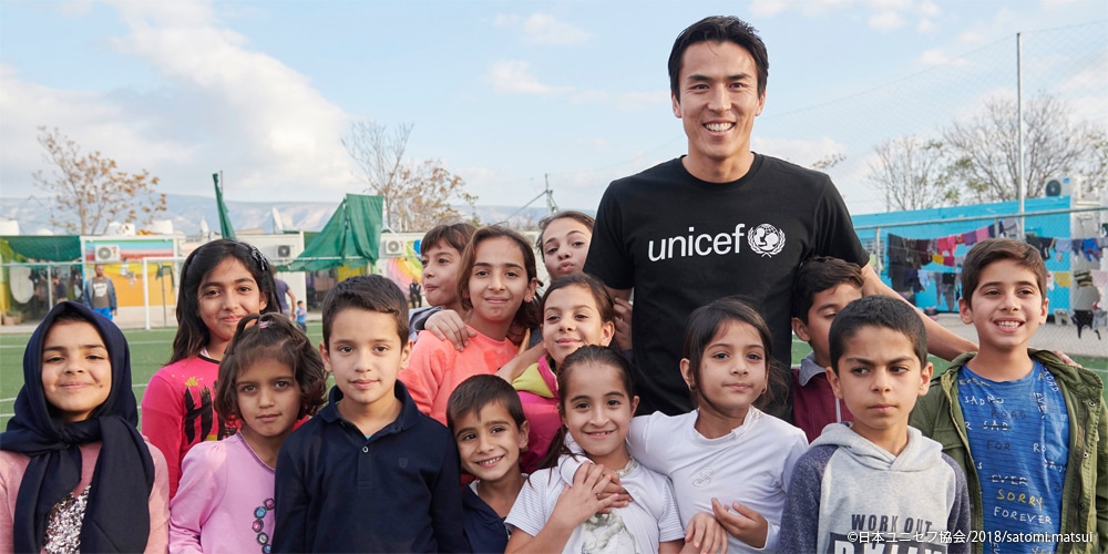 現在はサッカー指導者として世界の舞台で活躍を続ける、元プロサッカー選手の長谷部誠大使。飛行機の機内で手に取ったユニセフの封筒をきっかけに、長谷部大使が「ユニセフ・マンスリーサポート・プログラム」のサポーターとなったのは2007年です。