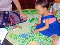 - 村で乳幼児期の子どもの発育や教育を支援する県や郡レベルの指導者へ研修を行いました。研修を受けた指導者は44村で2,450人の親に育児指導を行っています。