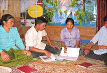 村の米銀行は、米不足の時に低利で村人に米を貸し出しています。94村から376人の米銀行委員会のメンバーが米銀行の運営管理についての再研修を受け、米銀行の収益を子ども達の教育へあてるようになりました。