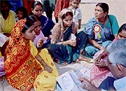 | 男たちはいつも私たちを殴りました。グループ活動に参加し始めると、男の態度は180度変わりました。男たちは、融資や緊急資金を元に生計を立てる仕事を開始することがいかに大切で、いかに家族のためになるかを認め、自分たちの妻を遠く離れた集会場や、時には地元誌の記者のところまで連れて行くようになりました。 | ||