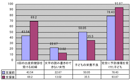 支援を受けた地域では、子どもや女性の生活が向上しています。