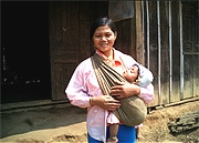 イエナーさんはユニセフが支援する村の子育てグループに参加し、育児についての情報を交換しています。「妊娠中は健診のために保健センターに行き、子どもが生まれて6ヶ月間は母乳で育てて、予防接種もきちんと受けさせました。子どもの出生登録もちゃんと行いました。村の保健員の人は、予防接種の前の晩には私の家に来てくれるし、子どもが栄養不良にならないよう食事の与え方についてもアドバイスしてくれて、とても感謝しています。」イエナーさんの子どもはユニセフの支援を受けた幼稚園に通っています。以前は先生がベトナム語しか話さないため子どもが理解できませんでしたが、今は地域の先生がドン語とベトナム語の両方で教え、子どもたちがどんどん参加するようになりました。ユニセフは先生の研修を行ったり、おもちゃを提供したり、衛生的な環境が保たれるように支援しています。