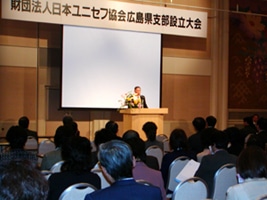 2006年3月6日(月)、(財)日本ユニセフ協会広島県支部の設立大会が開催されました。設立大会では、県支部の理事・評議員をお引き受けいただきました県内を代表する経済界、教育関係者、幅広い団体の代表者にご出席いただき、広島県でのユニセフ協力活動の更なる発展を誓いました。