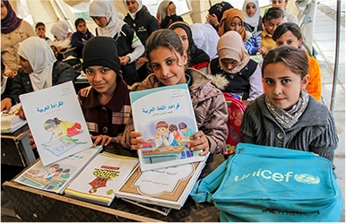- 困難な状況下でも子どもたちが勉強を続けられるよう、公式・非公式の教育環境の整備、教材や通学カバンなどの支援