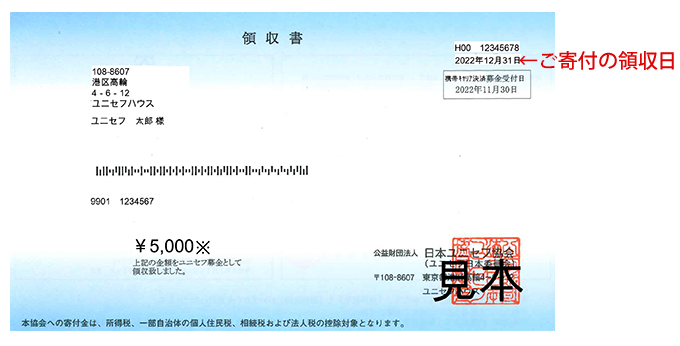 また、領収日は、募金のお申込み日、お支払い日ではなく、当協会への入金日となります。