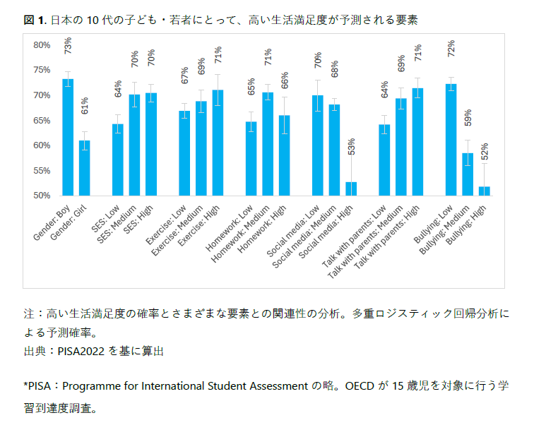 この結果は、日本の子ども・若者(15歳)の生活満足度の高さの決定要因について分析したところ、さらに明確になりました(図1)。