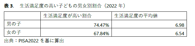 - 男の子は女の子に比べて自分の生活に満足している傾向が強くなっています。