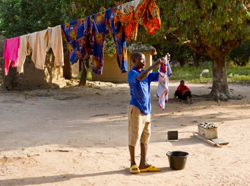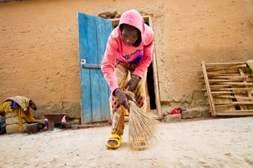 学校に行かないときには家の手伝いをします。庭掃除や、野菜畑の収穫を手伝ったりします。弟たちの家畜の世話も手伝います。今は弟が家畜係です。