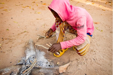 06:00 起床。家族のみんなが起きる前に、自宅前を掃除して、火をおこします。