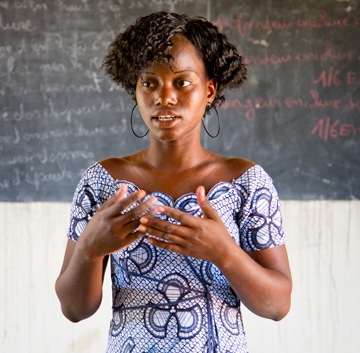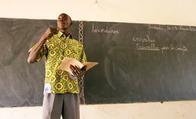 07:58 毎日1限目は、保健、栄養、衛生、人口と環境、菜園、畜産など実用的な科目を、フランス語の読み書きの練習をしながら学びます。HIV/エイズについて学ぶこともあります。